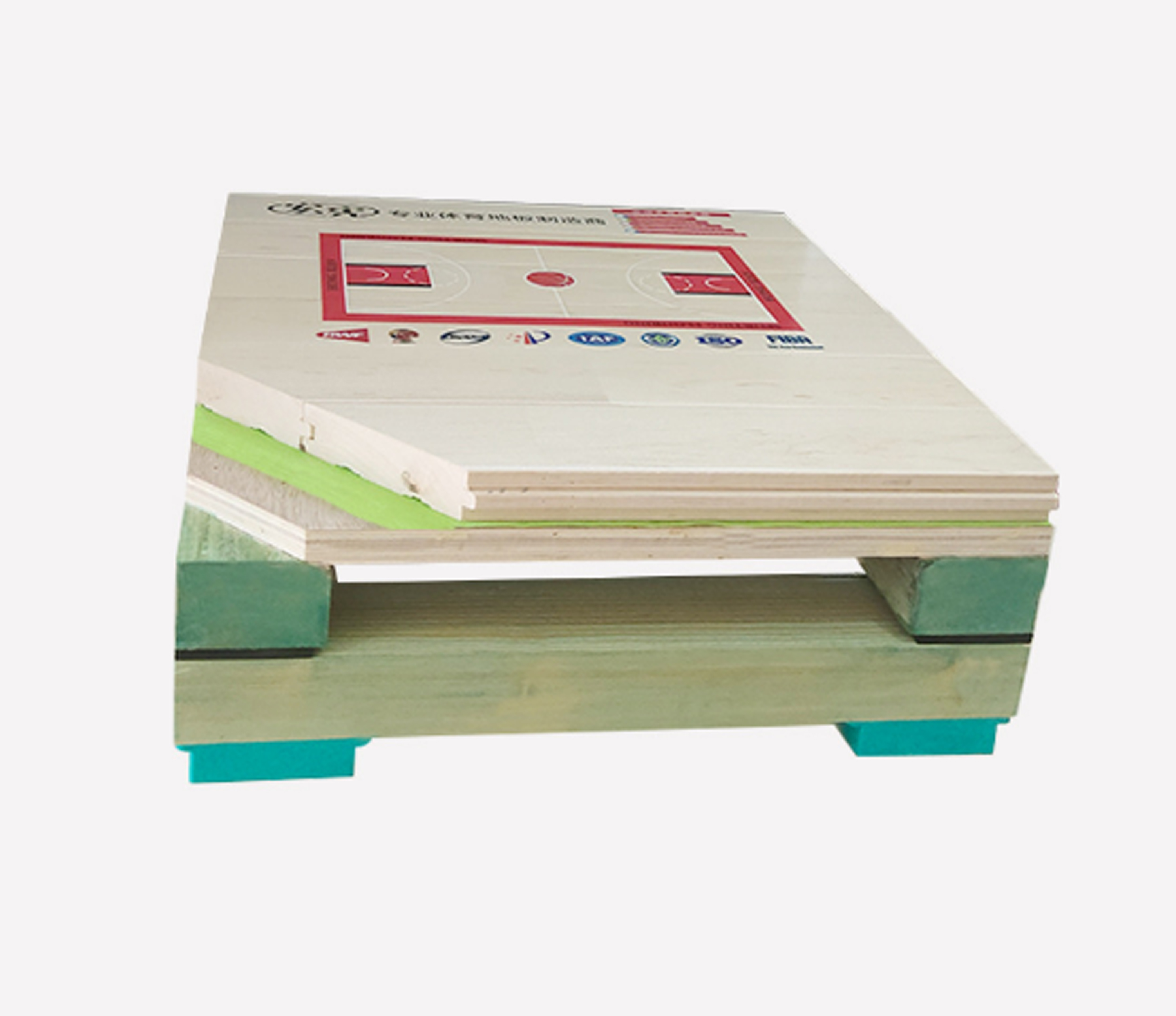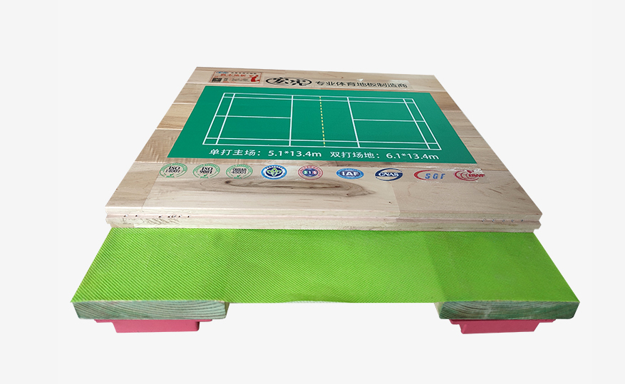 雙層板上下龍骨雙彈結構高吸震性和連續回彈性的固定懸浮式的運動木地板系統,適用于國內,國際比賽。