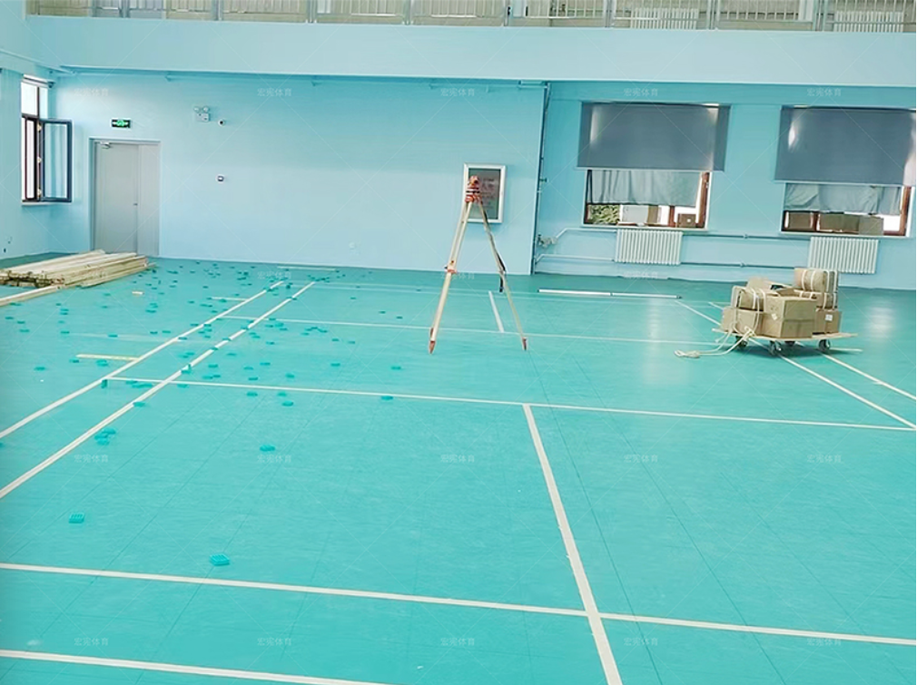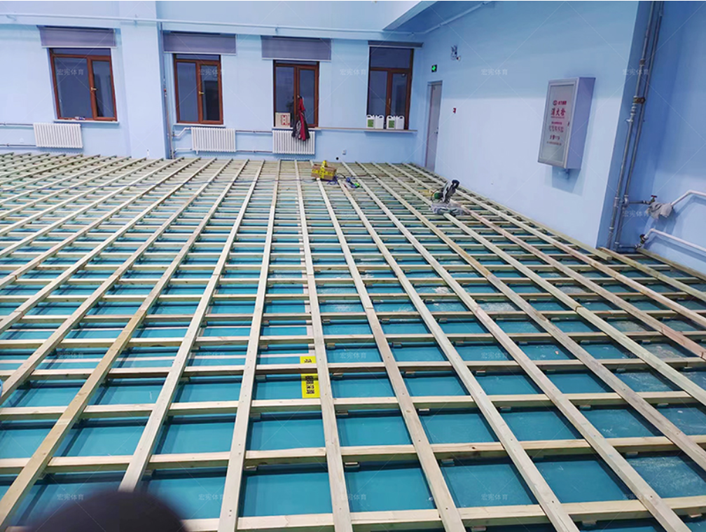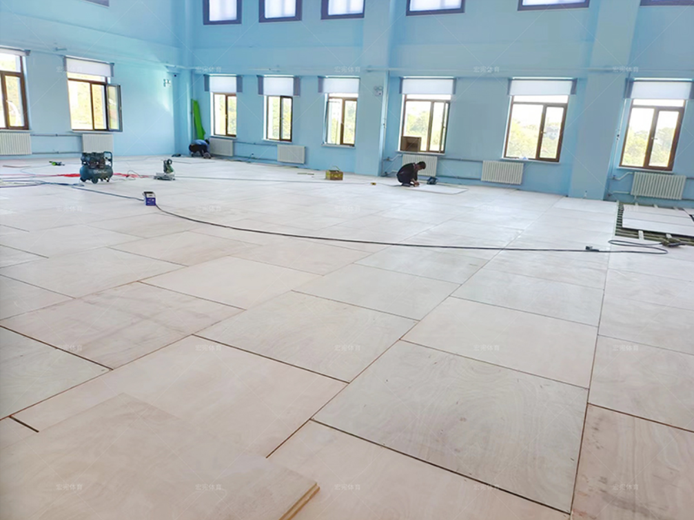 鶴崗法院羽毛球館木地板鋪設中,場館采用楓樺木A級單層龍骨結構,期待完工效果~
