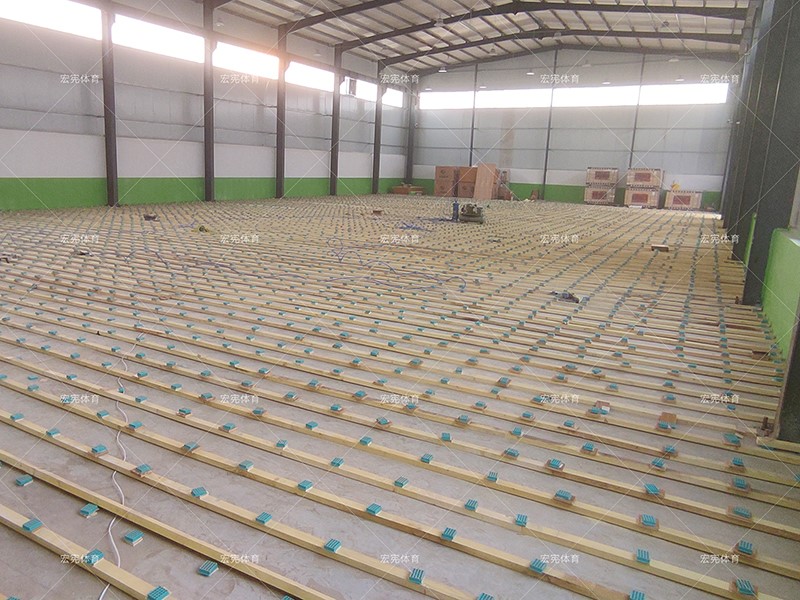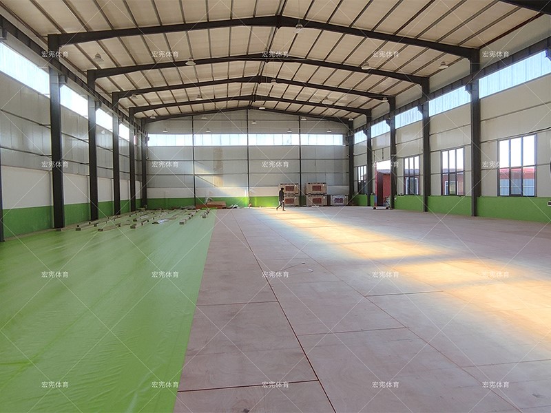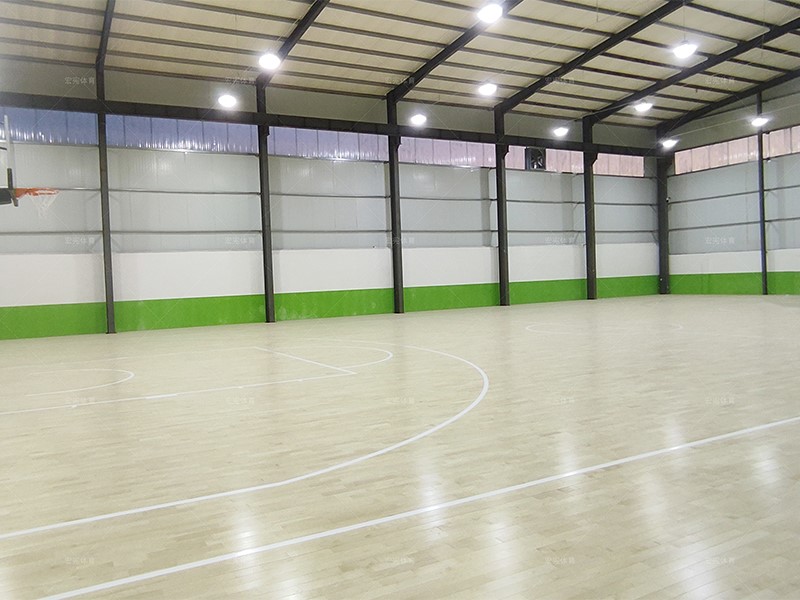 場地共1000平米,分為一個小的U6球場,和標準的籃球場;采用楓樺木A級加密龍骨結構。 面板光潔無瑕,不起毛刺,無結疤無色差,屬于面板中等級較高的;加密龍骨結構的配置,可以很大程度的感受到球體回彈不同,從普通地板球體回彈70%變成90%以上,可以達到比賽場館的要求。底層采用專利膠墊,環保可再生,不僅有提高球體回彈的作用,而且可以增加地板的穩定性,提高地板的使用年限。