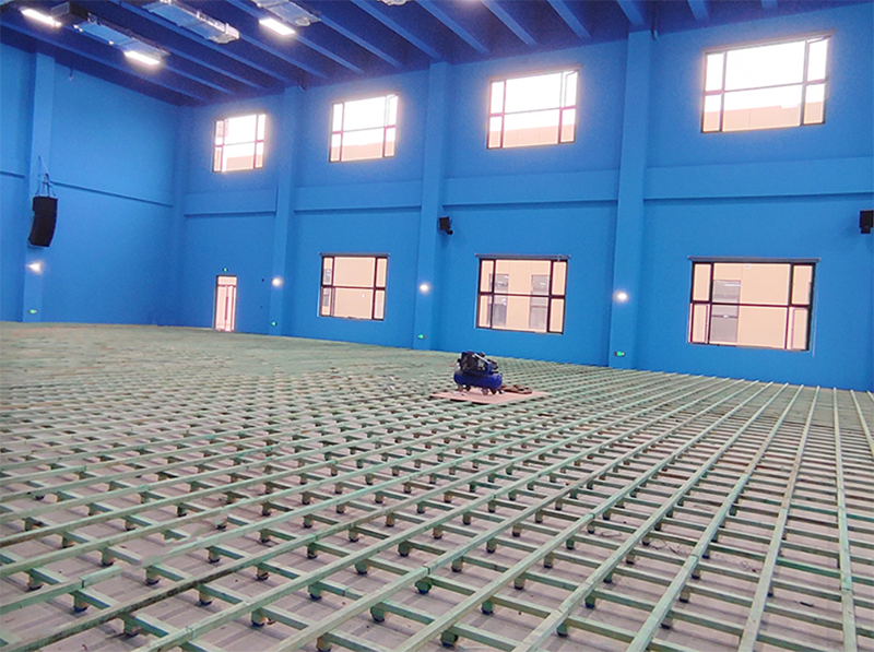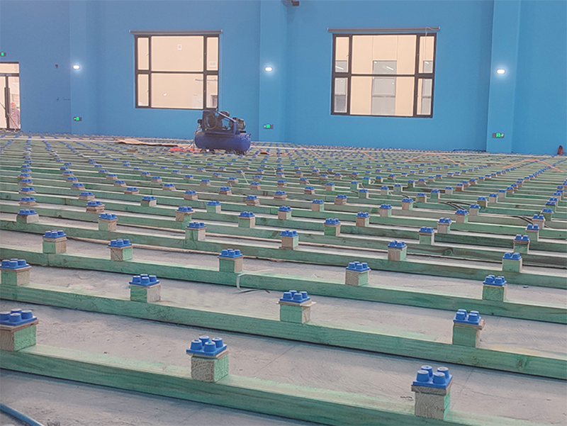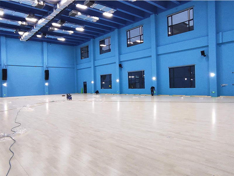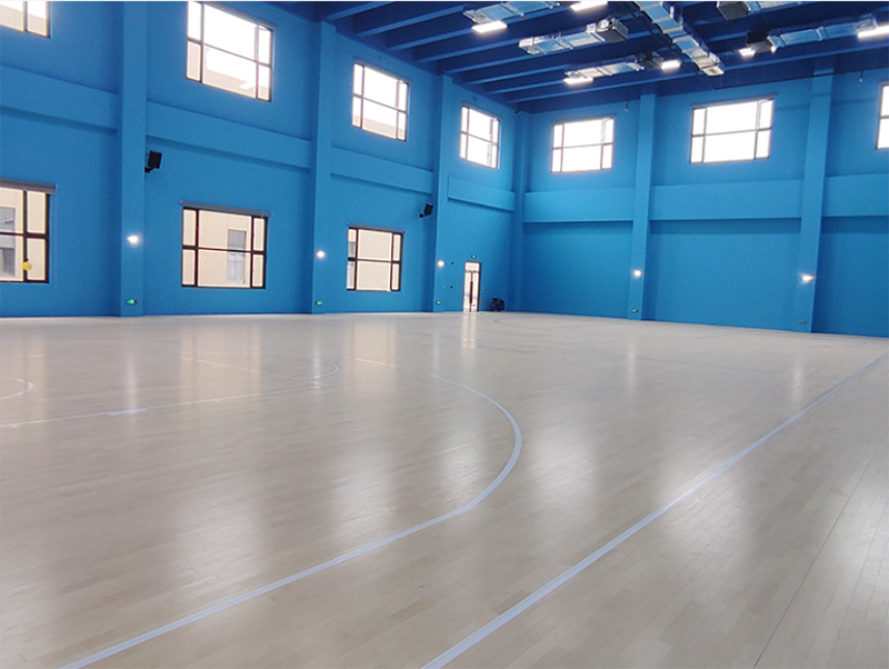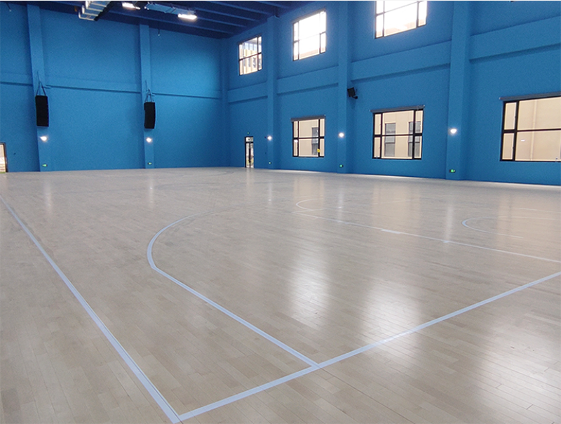 成都祥鵬機場籃球館圓滿竣工!場館共900平米,整體看著比較寬闊,采用楓樺木A級面板,原本的木質紋路和藍色墻面搭配更加突出A級地板整潔無色差光亮的特征;底層采用雙層龍骨結構,根據場館的地面進行調平后,地板更加平整,回彈性更好,地面的通風也更佳。