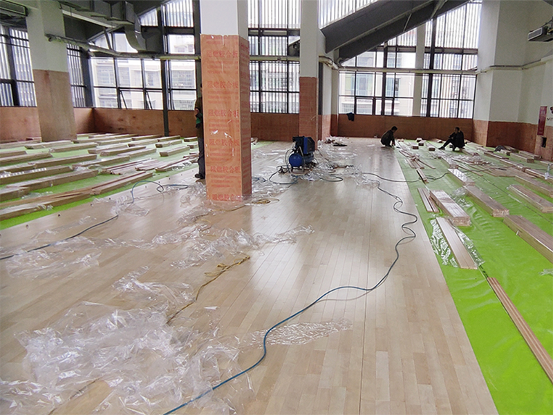 四川綿陽吾畏籃球館鋪設施工中。場館采用楓樺木A級面板,面板整潔無色差,采用單層龍骨結(jié)構(gòu)。期待它完成效果吧~
