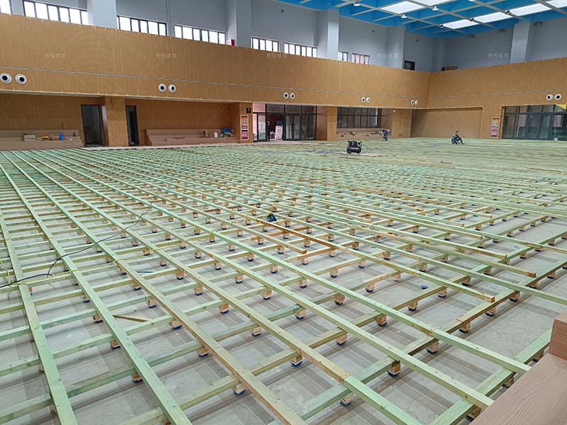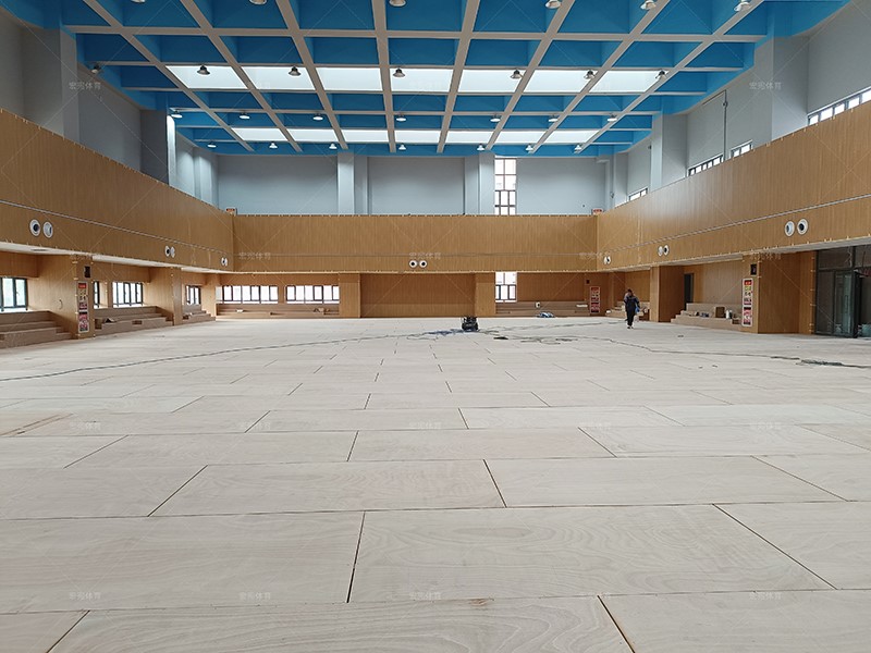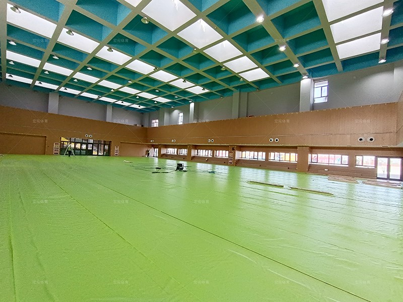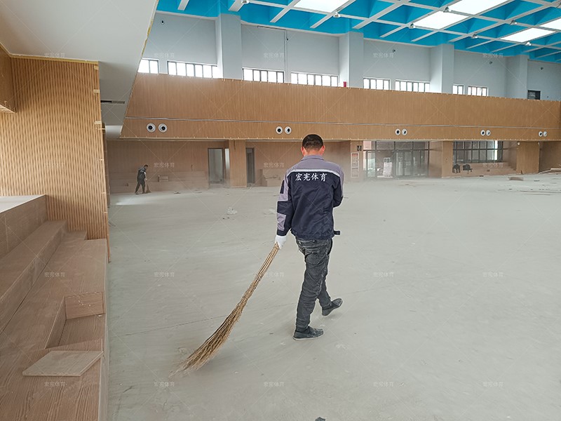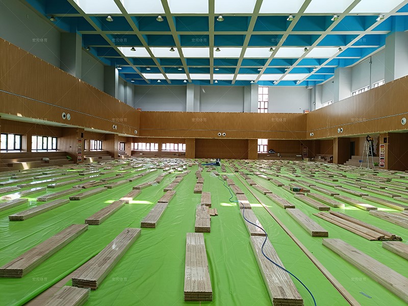華山中學(xué)籃球館木地板施工中!場地共1100平米 位于新疆巴音郭楞庫爾勒市 采用楓木A級雙層龍骨結(jié)構(gòu) 期待最終的完成效果~