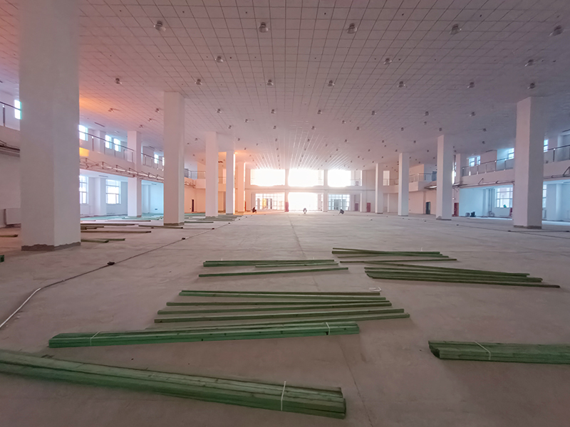京津新城一中東至黃河大道,南至水渠,北至珠江南環路,毗鄰京津大學城總建筑面積約60000平方米,其中體育館占地約3000平方米,分為一個標準賽事籃球場地、九片羽毛球場、六片乒乓球場。采用宏憲SPTFL02運動木地板系統。
