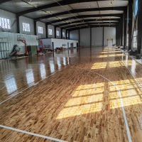 場地共1000平米,為一個大型的廠房,分為羽毛球場與籃球場兩個部分,全部采用楓樺木B級SPTFL02結構。面板采用工廠UV防滑底漆,充分保證場地的防滑度,提高場館的安全系數,地板內部結構中多層板與龍骨,全部為烘干防腐材質,保證場館的使用年限,整體完工,面板清晰......